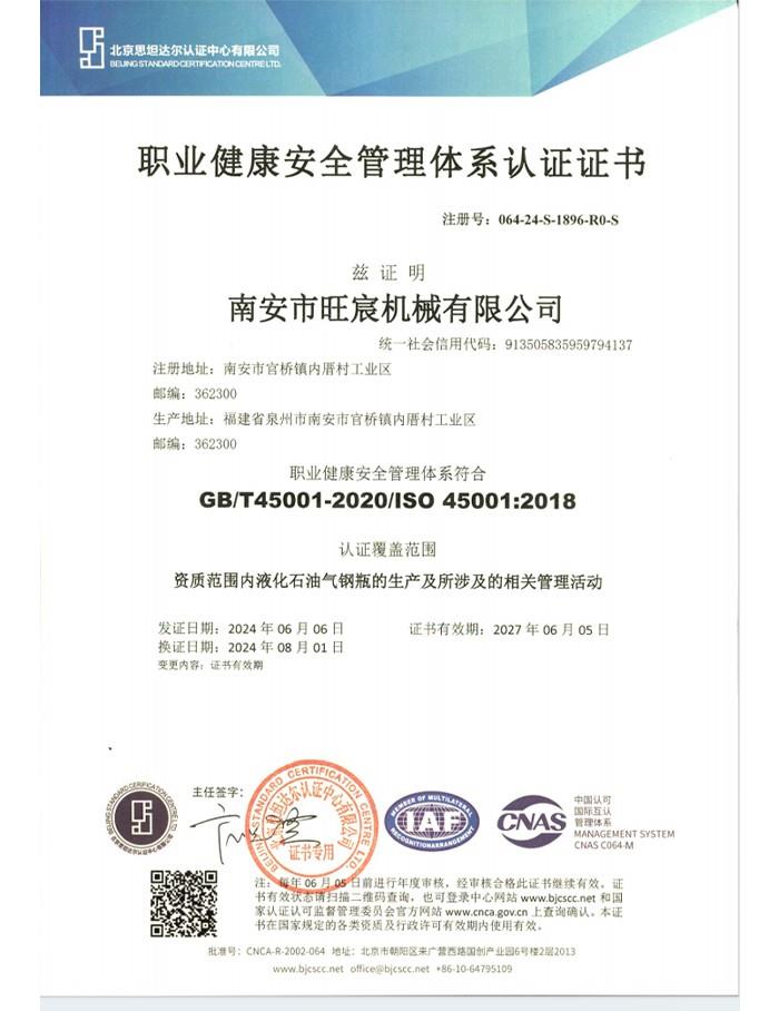 職業(yè)健康安全管理體系認(rèn)證證書(shū)